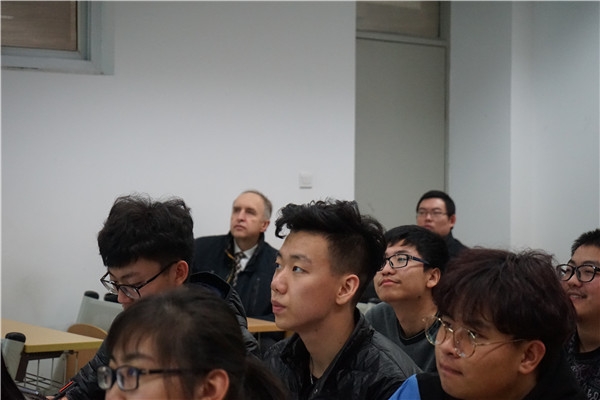 加尔金校长还在张益农副院长陪同下进入到学生学习的课堂,对学生高涨的学习态度表示赞赏。随后,加尔金校长参观了我们学院实验室,各专业负责人仔细地向加尔金校长讲解了实验室的情况。